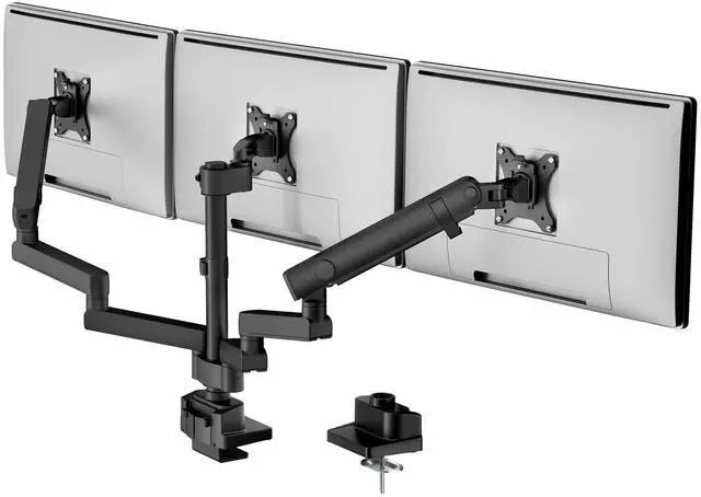 monTEK Triple Monitor Mount for Max 27 inch Computer Screens, 3 Monitor Desk Mount Each Arms Holds up to 19.8lbs, Three Monitors Desk Arm with Swivel, Tilt, Rotation, MA1009PBK-T