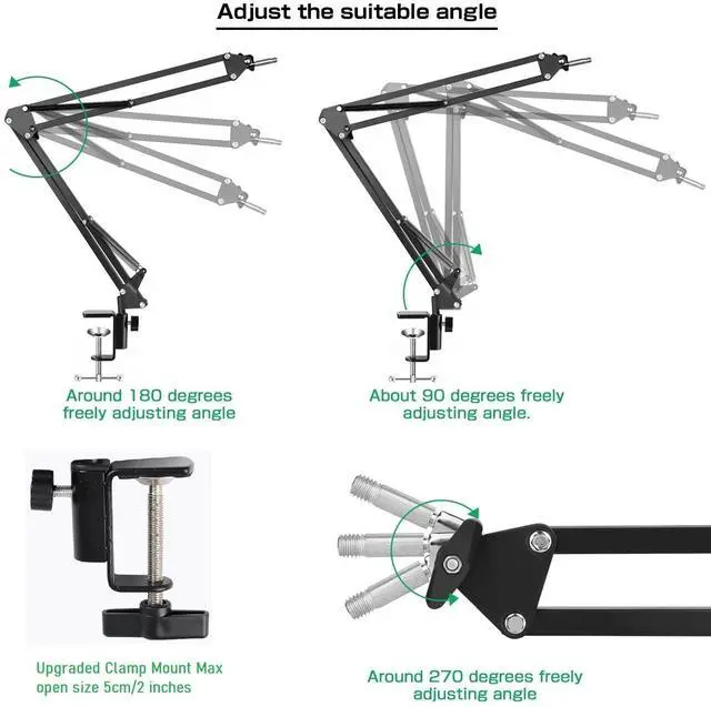 Clamp Mount: can fit Desk/Table/Sideboard thickness max 5cm/2 inches; with cushioning sponge to protect your desk/Table surface scratched;