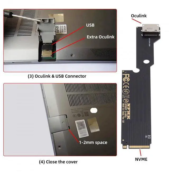 PCI-E 4.0 M. 2 M-key to Oculink SFF-8612 SFF-8611 Host Adapter for ThinkBook 16+ Laptop External Graphics Card & SSD
