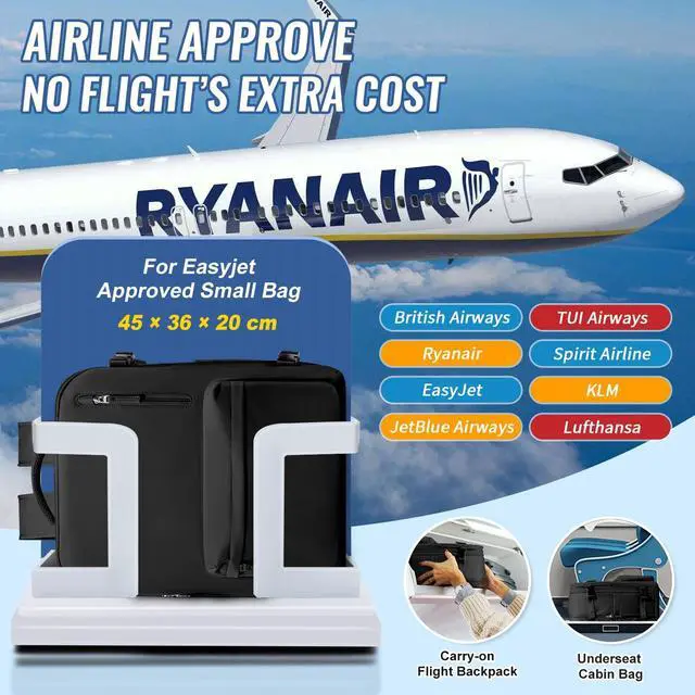 WONHOX Travel Backpack Women, Carry On Backpack Flight Approved 18x14x8 inches Bag Spirit Airlines Personal ltem, College Sports Hiking Rucksack Waterproof Casual Daypack Laptop Blackpack Men, Black