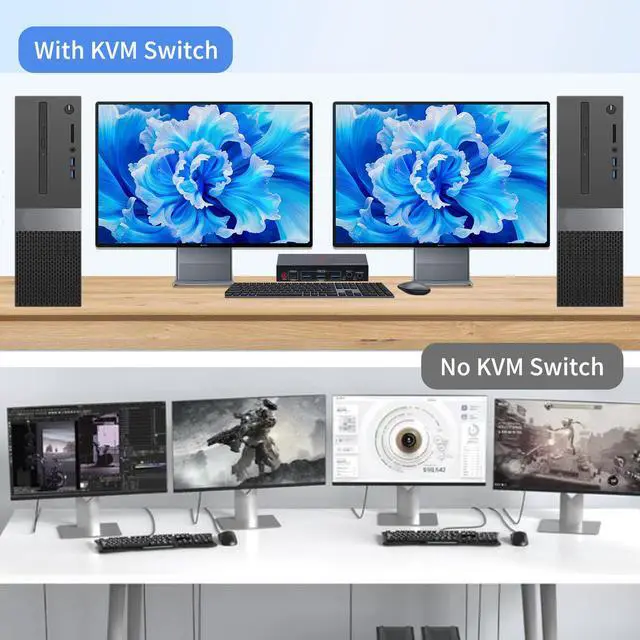 Crisp 8K Visuals, Realistic Clarity Experience next-level image precision with kvm switch displayport hdmi support for up to 8K@60Hz and 4K@120Hz resolutionsperfect for gaming, design, or multitasking setups. Compatible with HDCP-protected content and lower resolutions like 4K, 2K, and 1080P