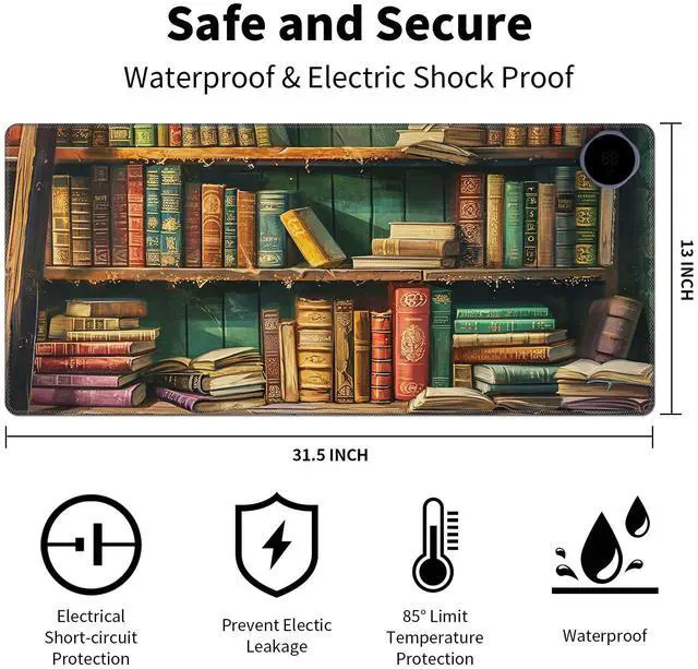 Desk Mouse Pad has waterproof surface and does not leak electricity. non-slip pad. Water is accidentally spilled on the warm desk pad, just wipe it clean gently, there will be no water seepage phenomenon. The switch has a built-in overcurrent protection device to prevent electric shock.