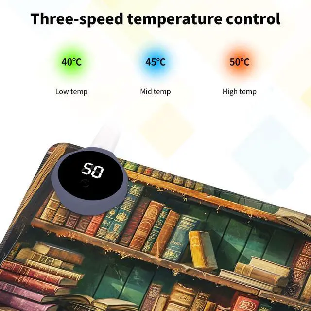 Heated desk pad for keyboard and mouse. The heated mouse pads has 3 levels of temperature 384246 ( 100.4, 107.6, 114.8 ). select the most comfortable setting for you, high is good for a quick warm up and low is perfect for all day. This is an office essential!