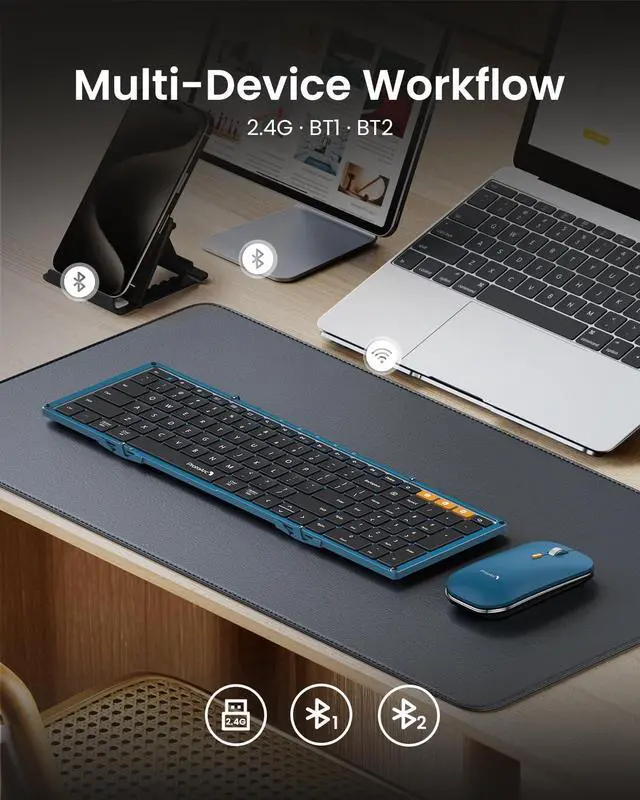 Full-Size Productivity On The Go: A 105-key folding keyboard delivers a true desktop experience with dedicated function/number padsideal for spreadsheets, coding, or data entry anywhere. Designed for frequent travelers, its ultra-slim profile and flat typing surface (no tilt) enable effortless portability, while the simple fold-and-go mechanism (no locking clips) ensures quick deployment