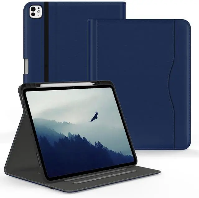 Jarviwiin Case for iPad Pro 13 inch M4 (7th Generation 2024), Multi-Angle PU Leather Cover for iPad Pro 13" (7 Gen) with Pencil Holder/Hand Strap, Auto Wake/Sleep, Navy Blue