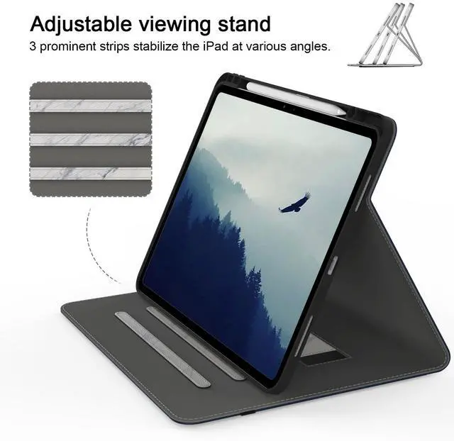 [Multiple Usage Scenarios] The protective case can have three anti-slip strips and a strap to keep the iPad at its most commonly used angle, making it easy for you to use in multiple scenarios, such as typing, vide