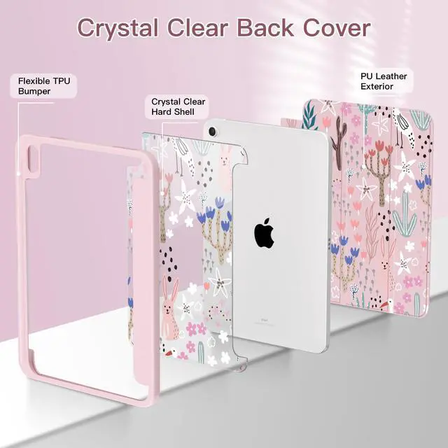 [TPU+Crystal Hard PC Back Shell]- Transparent Hard shell back cover with flexible TPU bumper design, Not only case protect your iPad from shocks, drops and impacts,but also shows off the original beauty of your iPad 11/10 generation