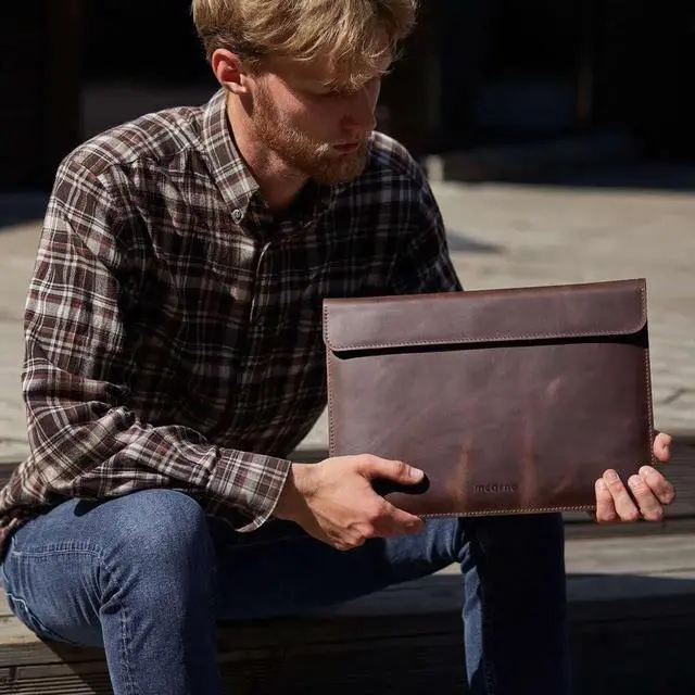 SOFT FELT LINING + DURABLE SHELL Tough leather on the outside, soft felt on the inside. Prevents scratches, absorbs impact, and maintains structureideal for business travel, office, or everyday use.