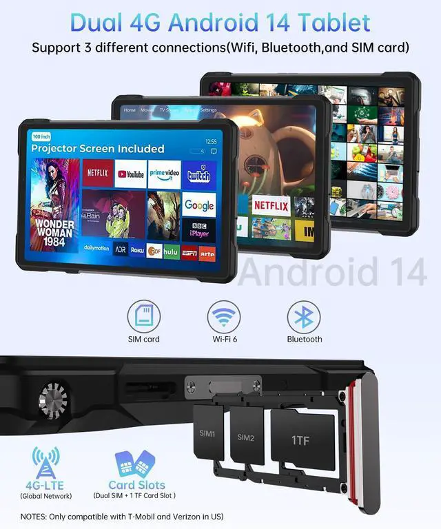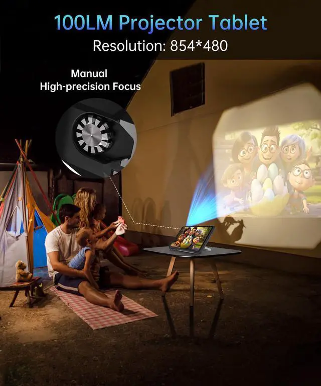 4G Android Tablet with 100LM Projector8849 Tank Pad E large android 14 tablet with a updated projector(120Hz projection refresh rate/854*480 resolution), which makes you can enjoy clear and vivid images at any time. Say goodbye to the small screen and limited viewing angle, experience a truly immersive feeling. Not only that, the special thing is its manual focus design, you can adjust the clarity according to your needs