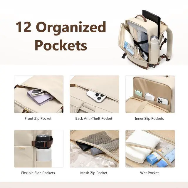 TSA-Approved & Convenient With a 180° zipper opening, this backpack is TSA-friendly, making airport security checks hassle-free. Fits overhead bins and under seats for most airlines.