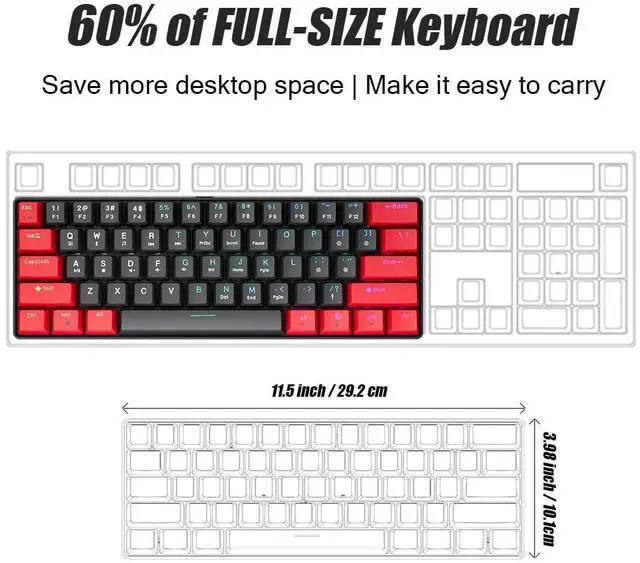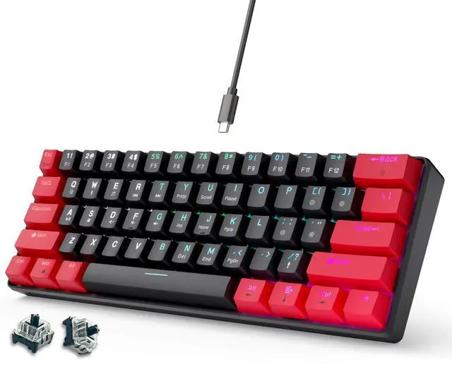 abucow 60% Mechanical Gaming Keyboard Black Switch Wired Compact Keyboard Anti-Ghosting No-Conflict 61 Swappable keycaps Ergonomic Design for Windows/Mac
