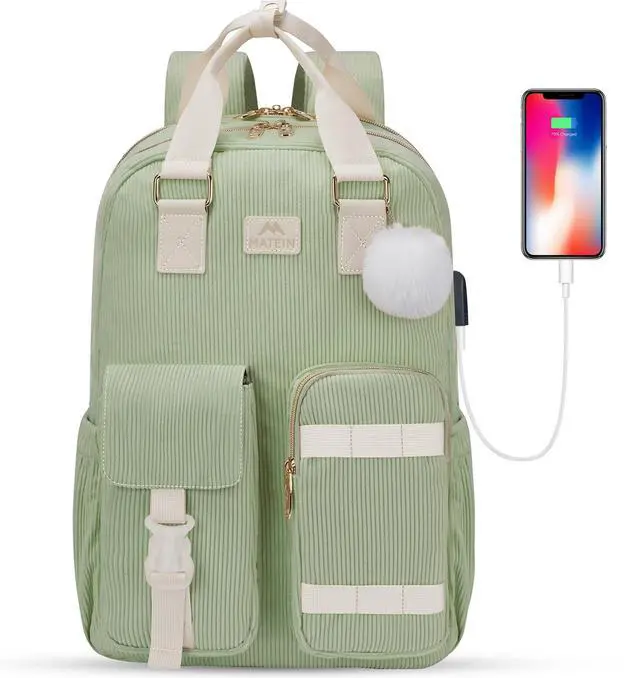 MATEIN 15.6 Laptop Backpack, Cute School Backpack for Teens Girls Corduroy Computer Bookbag with Luggage Strap, High School College Backpacks Students Daypack Gifts for Girl Sister Kids Nurse, Green