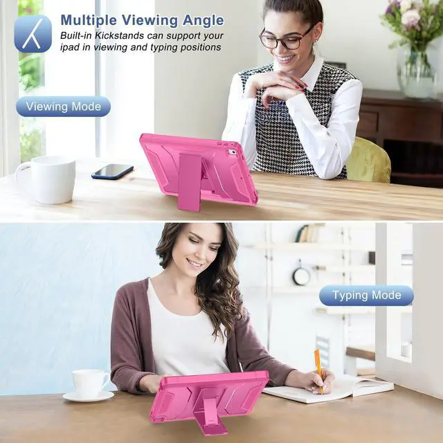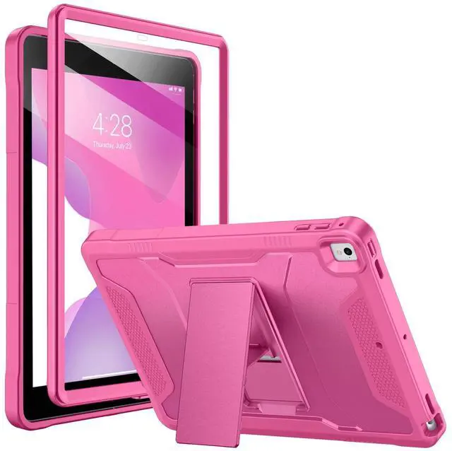 Soke Case for iPad 6th/5th Generation 9.7 Inch 2018/2017, with Built-in Screen Protector and Kickstand, Rugged Full-Body Heavy Duty Protective Cover for Apple iPad Air 2 /Pro 9.7 - Hot Pink