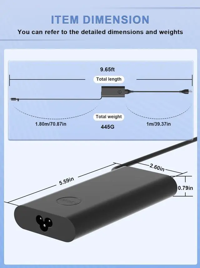 SLRIOYS charger Compatible with XPS 17 9700 9710 9720 9730 XPS 16 9640 XPS 15 9500 9510 9520 9530 9575 2-in-1 XPS 14 9440 XPS 13 12 7390 7390 2-in-1 9390 9380 9370 9365 2-in-1 9360 9350 9340 9320 9315 2-in-1 9315 9310 2-in-1 9310 9305 9300 9250 2-in-1 Ins 16 14 Plus 7640 7630 7620 7420 7430 7440 Ins 7630 2-in-1 7640 2-in-1 7620 2-in-1 7635 2-in-1 5625 5620 5630 5640 5645 7440 2-in-1 7400 7306 2-in-1 7415 2-in-1 7420 2-in-1 7425 2-in-1 7430 2-in-1 7430 7435 2-in-1 7490 5482 2-in-1 5440 5410 2 in 1 5430 7486 2-in-1 7486 7590 2-in-1 5582 2-in-1 5310 7390 2-in-1 5280 2-in-1 5330 5320 3420 Vostro 7620 5310 5320 Laptop SLRIOYS Compatible with Alienware-x14 R1 R2 Precision 5770 5760 5750 5690 5680 5570 5560 5550 5530 2 in 1 5490 5480 5470 3590 358 3580 3571 3570 3561 3560 3551 3550 3541 3540 3490 3480 3470, Pro Max 14 16 MC14250 MC16250, Pro Rugged 13 14 RA13250 RB14250, 14 Plus 2-in-1 DB04255, Pro 13 14 16 Plus PB13250 PB13255 PB14250 PB14255 PB16250 PB16255, Pro 13 14 Premium PA13250 PA14250 Gaming Laptop Computer Notebook Replacement Charger Power Supply Adapter Cord SLRIOYS Compatible with Latitude 5501 5411 5421 5431 5511 5521 5531 5530 5540 5520 5510 5450 5500 5550 5455 5401 5285 5350 5179 5175 5289 5290 5310 5320 5330 5340 5400 5410 5420 5440 5430 7350 7640 7450 7650 7455 7520 7530 7200 7210 7275 7285 7230 7310 7320 7330 7340 7300 7370 7389 7390 7400 7410 7420 7430 7440 7030 7212 7220 3500 3510 3520 3530 3540 3450 3550 3140 3120 3320 3301 3330 3340 3390 3300 3400 3410 3420 3430 3440 3445 9510 9330 9410 9420 9430 9440 9450 9520 2-in-1 Laptop SLRIOYS