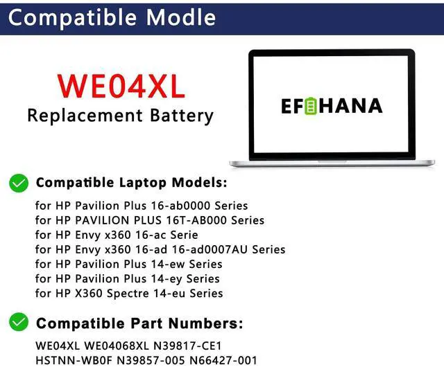 EFOHANA WE04XL Battery Replacement for HP Envy X360 16-AC 16-AD 2-in-1 Spectre X360 14-EU 2-in-1 Pavilion Plus 16-AB 16T-AB 14-ey 14-ew Series HSTNN-WB0F N39817-CF1 N66427-001 N39857-005 7.72V 68Wh