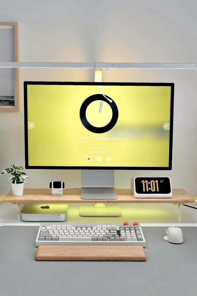 Sleek Bamboo + Acrylic Design: The mix of natural bamboo and clear acrylic creates a clean, floating look that adds elegance and visual lightness to any workspace.