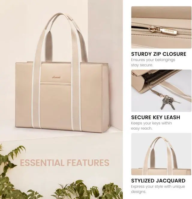Versatile Compartments Work Tote: The work bag for women features 6+1 types of compartments, including padded sections to protect your electronics and space for a Stanley water bottle. This ladies' office bag fits a 15.6-inch laptop, iPad, files, books, and clothes. It's more adaptable than other laptop tote bags for long office hours and outdoor business trips.
