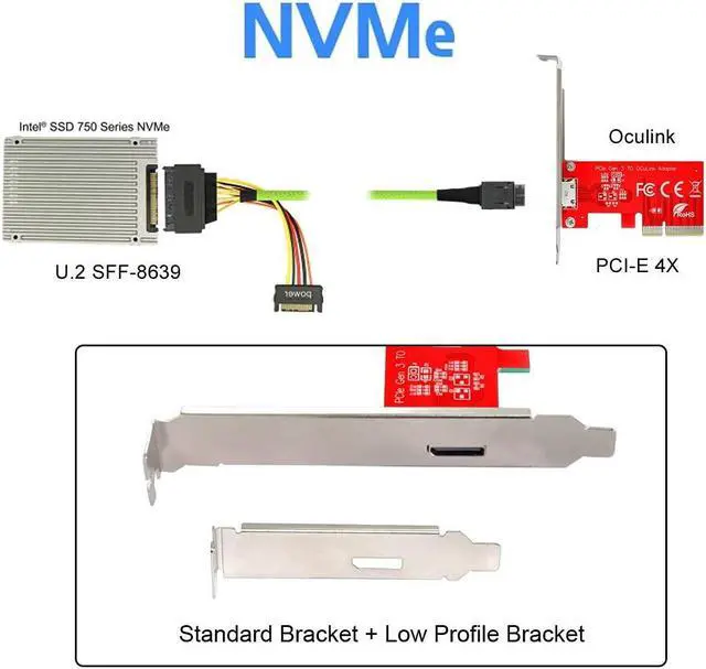 • chenyang Oculink External SFF-8612 SFF-8611 Host to PCI-E Express 3.0 4.0 PCI-E 4X Adapter for PCIe SSD with Bracket