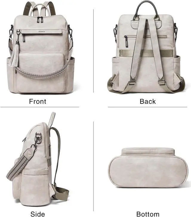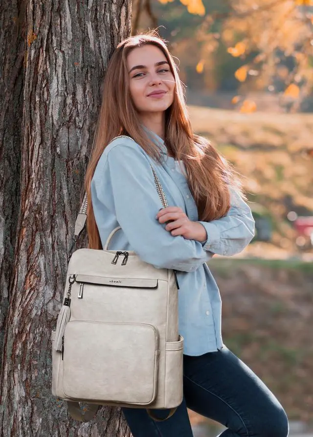 Leather Laptop Backpack for WomenLaptop backpack is made of high quality waterproof Vegan leather, HEAVY DUTY & DURABLE.Total of 9 pockets,easy to organize all work necessities,college supplies,travel essentials.