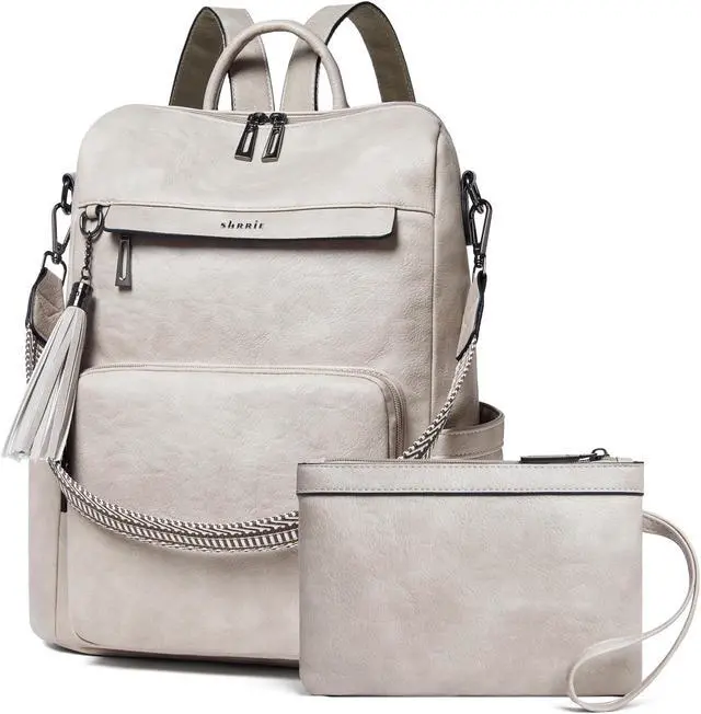 Shrrie Vegan Leather Laptop Backpack for Women 15.6 inch Work Backpack Fashion Travel Backpack Purse for Travel College Work