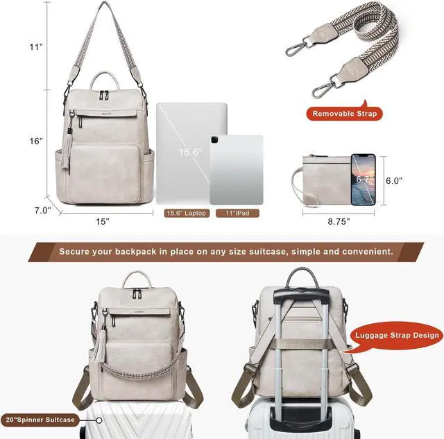 Practical Backpack Luggage Strap DesignLeather backpack for women is dsigned for traveling, it helps you free your hands and back from the burden. Make your travel more convenient and enjoyable.Waterproof travel backpack fits under the seat also