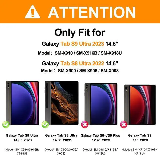 [Compatibility] Heavy Duty Protective Case for Samsung Galaxy Tab S10 Ultra 14.6 Inch 2024(Model SM-X920/X926B), Samsung Galaxy Tab S9 Ultra 14.6 Inch 2023 (Model: SM-X910/X916B/X918U), and Samsung Galaxy Tab S8 Ultra 14.6 Inch 2022 (Model: SM-X900/SM-X906). Not suitable for other models of iPad, nor any other tablet. Please check the model (SM-....) before purchasing.(Does not include screen protector & S-Pen)