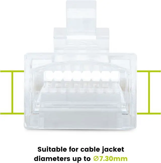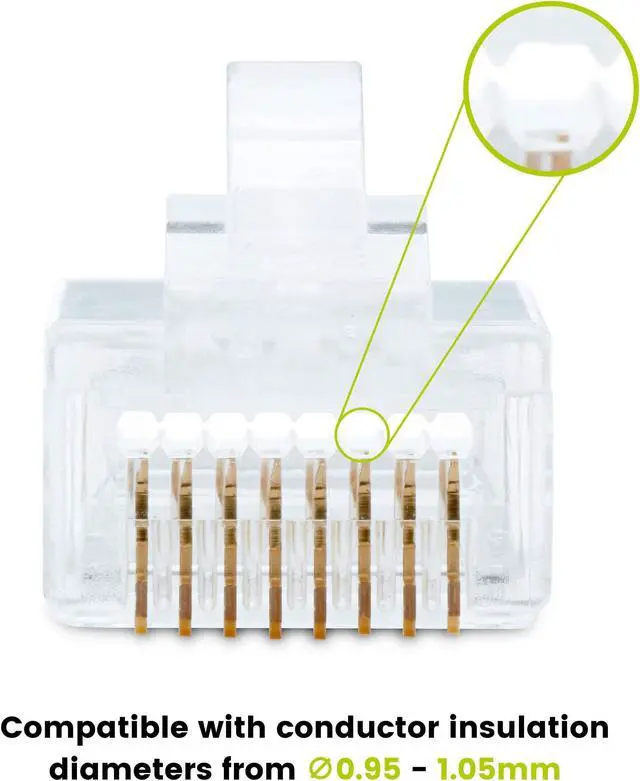[Versatile] Works with 23AWG stranded or solid conductors. Suitable for cable jacket diameters up to 7.30mm and conductor insulation diameters from 1.05 - 1.15mm. Terminate with our All in One Crimp and Termination Tool.