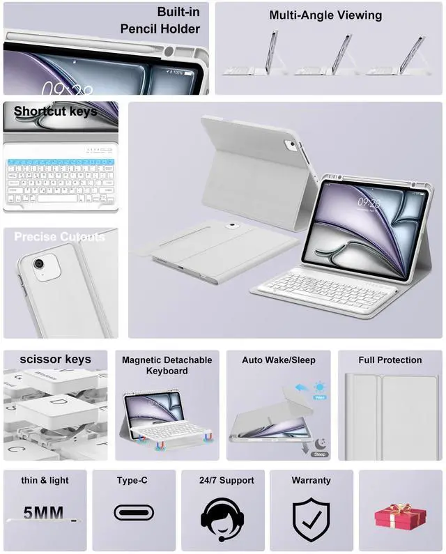 Easy of UseTransform your tablet into a powerful productivity tool with our tablet keyboard case for air 13inch. This teclado iPad pro 12.9 inch offers a seamless typing experience.