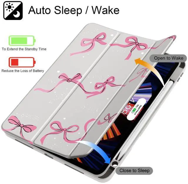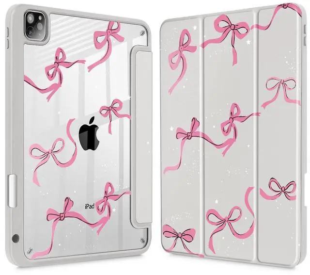 May Chen for iPad Pro 11 inch M2 4th Generation 2022, iPad Pro 11 3rd/2nd/1st Gen, Case with Transparent Shockproof Back Cover [Built-in Pencil Holder, Auto Sleep/Wake, Bows Khaki