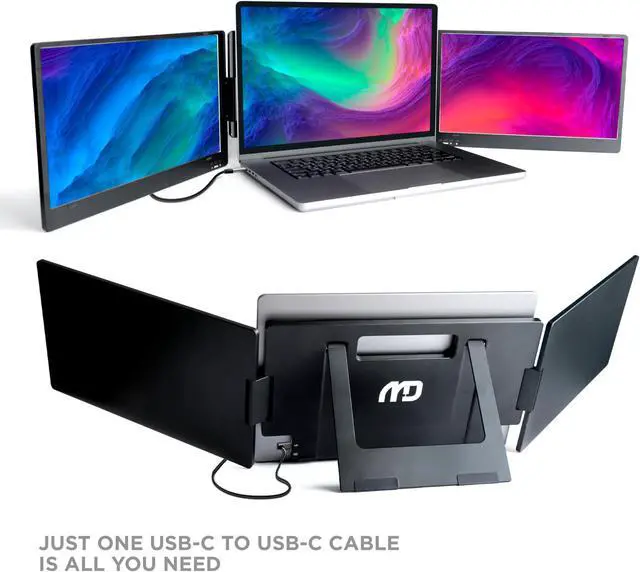 MetaDisplay MD1 Triple Portable Monitor for Laptop Screen Extender Dual Monitor Extender Plug and Play 14 Inch FHD 1080P IPS Display (macOS/Windows/Linux)