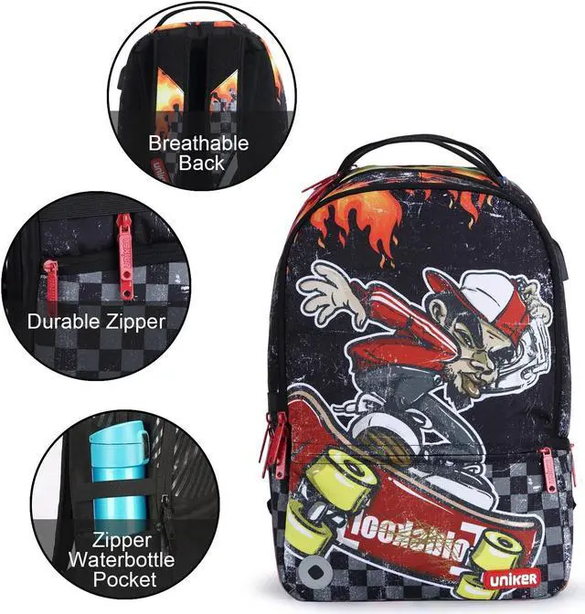 UNIKER School Backpack for Teen Boys, Laptop Backpack for 15.6 Inch Laptop, Designer Backpack for High School, Skateboard Boy
