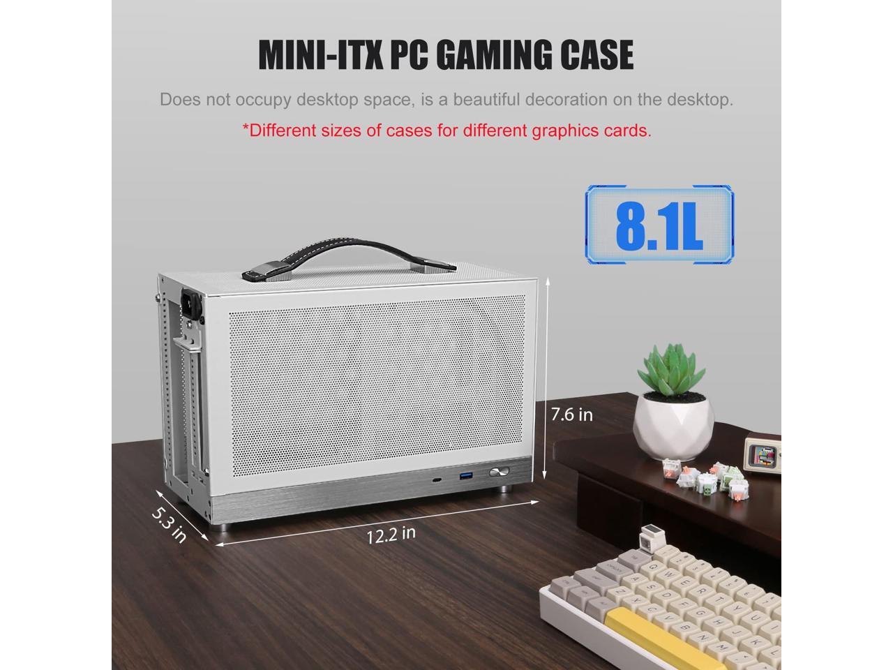 Size: 12.2 x 5.3 x 7.6 in, 8.1L Portable Handheld Minni Itx Case.
