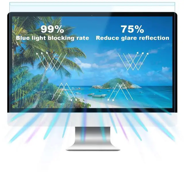 Blue light computer screen protector: Our blue light blocking screen protector can filter out up to 99% of blue light, anti-blue light prevent computer blue light damage to the eyes and reduce eye strain. Enjoy your work, reading, design or gaming time by using this blue light filter.