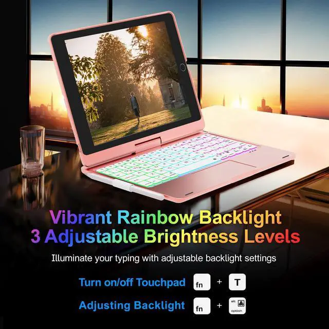 Baisla iPad 9th Generation Case with Keyboard 10.2" (2021), 360° Rotatable with Trackpad & Rainbow Backlit, iPad Keyboard case for 9th/8th/7th, iPad Air 3, iPad Pro 10.5 (Rose Gold)