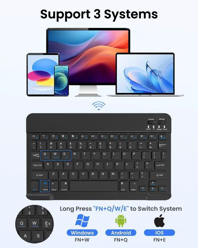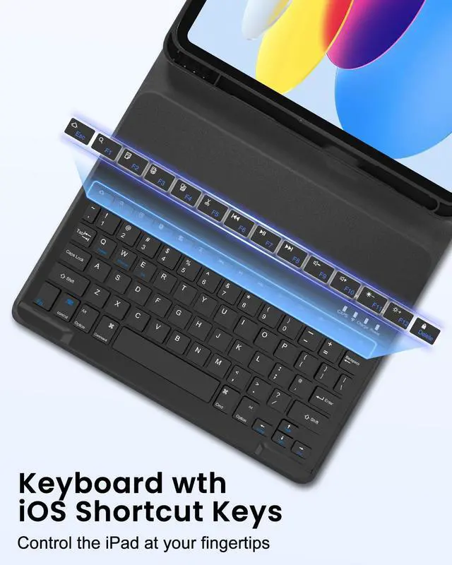 Shortcut Keys and Multiple Viewing Angles: This Case Keyboard with multi-function keys, such as play/pause, backward and forward, v