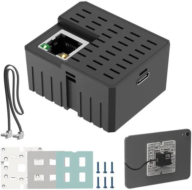 Agile Universal PoE Flush Tablet Wall Mount Kit with Bracket & Flat Cable, in-Wall AC to USB-C Power Adapter Enclosure for 8-12 Tablets (Suitable for 86 Boxes Smart Home/Office, 27W) (27W 1Gps Set)