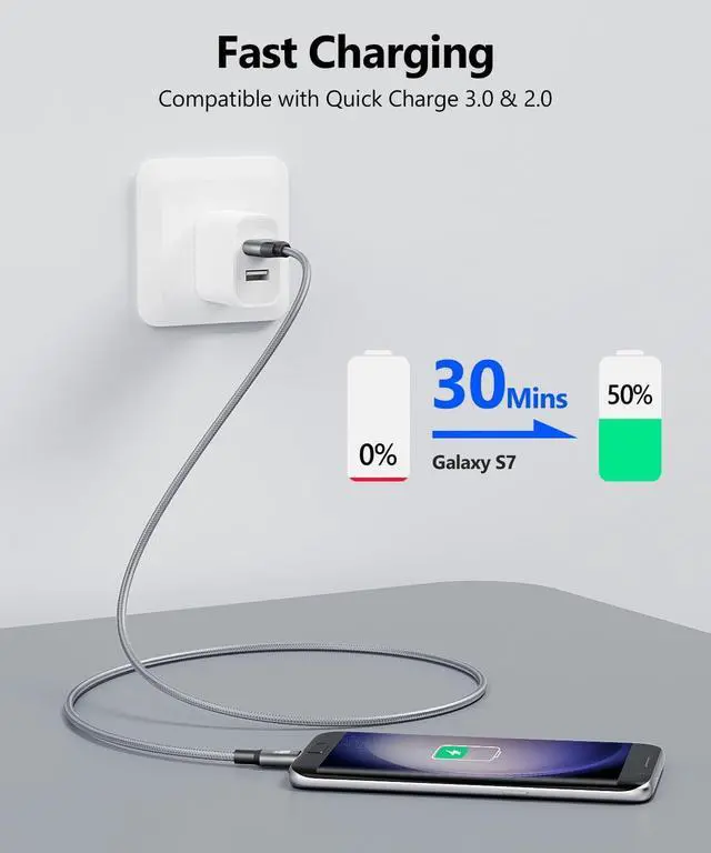 Durable and Flexible: Tangle-free nylon braided design which makes it have excellent anti-twisting & abrasion-proof properties.With a tested 50000+ bend, more durable, flexible.