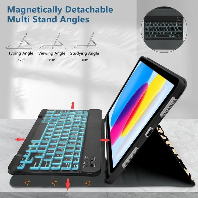 [for iPad 10.9 inch Keyboard Case Compatibility] This for iPad keyboard case is designed for 10.9 in for iPad 2022 10th Generation (Model Number:A2696/A2757/A2777). for iPad 11th (A16) generation 11-inch 2025 (ModelA3354,A3355,A3356), Please check the model number on the back of your for iPad before purchasing
