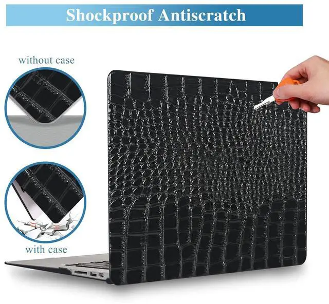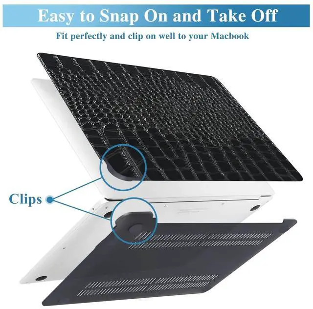 Features: Made of PU leather and PC materials, protecting your laptop from scratches and and everyday damage. This gorgeous crocodile-embossed macbook case has a vibrant and shiny finish that creates a striking visual effect. The rich, textured look of crocodile/alligator skin adds a tactile dimension to your device. Thoughtfully designed with a perfectly positioned cut-out for the logo. Snap-on design, easy to put on and remove. Fully access to all ports and buttons. The additional silicone keyboard skin protecting your keys from dust, spills and crumbs. Bottom vents help keep your laptop cool and four non-slip rubber pads keep your laptop in place. Snug fit, ultra-thin and lightweight, it won't add any noticeable weight or bulk to your laptop. Each piece of faux crocodile leather is crafted with its own unique natural grain. True luxury should be as unique as you are!