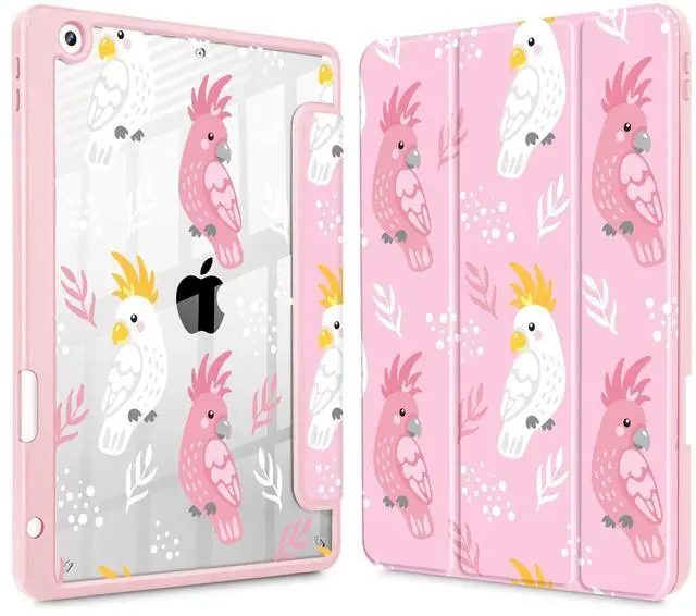 Lepeoac for iPad 9th Generation with Pencil Holder, iPad 8th/7th Gen Case 10.2-inch, [Built in Pencil Holder] Trifold Stand Auto Wake/Sleep Clear TPU Protection Back Cover, Parrots