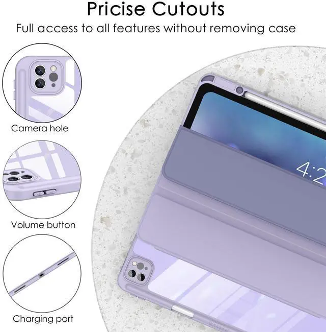(Tips: Apple Pencil is NOT included! ) ^^ [Auto Wake/Sleep] - Built-in magnetic strip provides auto wake sleep features, which save battery life. (Please remove the protective film from the clear back cover to shows the original look of your device. ) ^^ [Two Viewing Angles] - Trifold stand design provides stable support for the iPad air 13"/ Pro 12.9". Two angles provided for satisfying your reading, viewing, typing, or making video calls