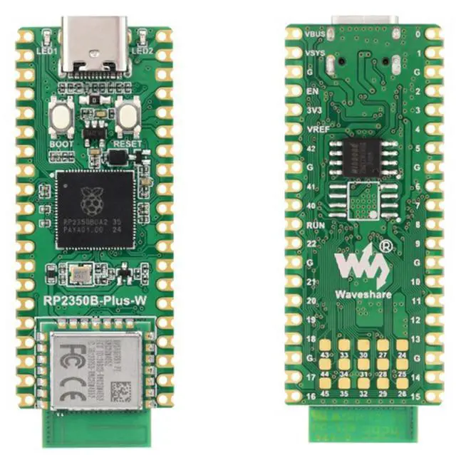 RP2350B-Plus-W Development Board, Based On Official RPi RP2350B Dual-core & Dual-architecture Microcontroller, equipped with the RPi Radio Module 2, integrated with 16MB Flash memory and reserved solder pads for PSRAM chip expansion, which makes it easy for you to develop and integrate into products quickly. ^^ Adopts unique dual-core and dual-architecture design: dual ARM Cortex-M33 or dual Hazard3 RISC-V processors support, flexible clock running up to 150 MHz.