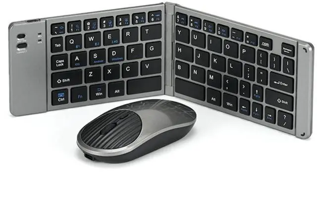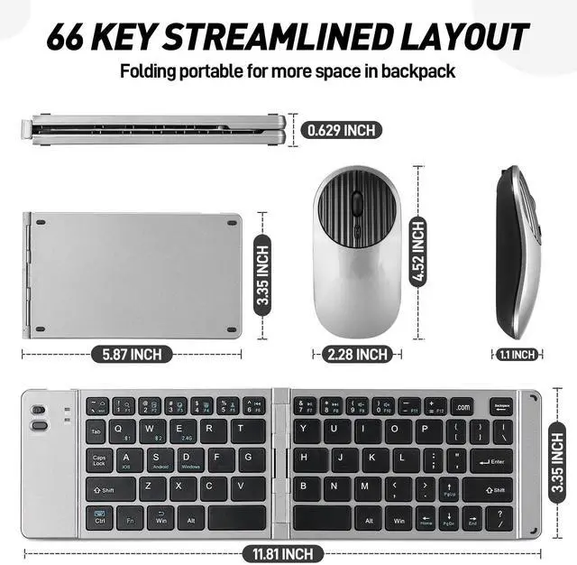 Pocket-Size and Easy to use, Mini Rechargeable Foldable Bluetooth Keyboard And Mouse Combo, Portable (Sync Up to 3 Devices), Ultra-Slim Travel Folding Keyboard for iPhone iPad Mac Android Windows iOS ^^ 2.4G Wireless and Bluetooth Keyboard Mouse; bluetooth 3.0 + 5.0 is better compatible with new and old devices, bluetooth