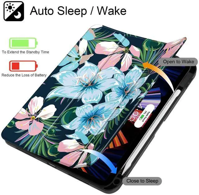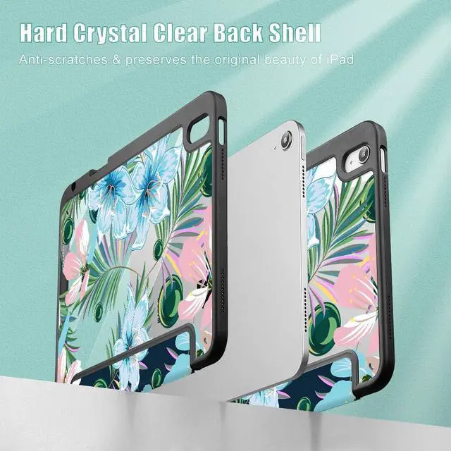 ICEKEE for iPad Air 11 Inch Case 7th/6th Gen (M3/M2) 2025/2024, for iPad Air 5th/4th Gen Case 10.9 Inch 2022/2020, Slim Stand Protective Cover with Hard Clear Back Shell Cover, Blue Blooming Flowers