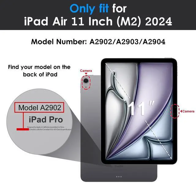 Air 11-inch (M2) 2024 (Model: A2902/A2903/A2904), not compatible with other devices. Before purchasing, please check the bottom of the back of the iPad to find the model number A**** ^^