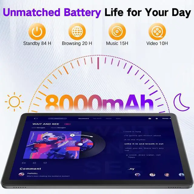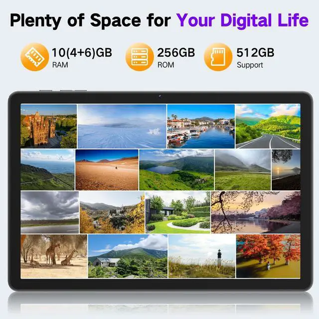 Combined with 10GB RAM, it ensures smooth multitasking even when running multiple apps at once, making it ideal for students, adults, and family use. ^^ Long-Lasting Battery & Dual Camera for Family ConnectionsEquipped with an 8000mAh battery, this wifi tablet supports up to 10 hours of mixed use, keeping you powered for work, online classes, or entertainment. The dual camera setup (8MP rear, 5MP front) allows for clear photos, video chats, and online meetings with loved ones. Dual-band Wi-Fi ( 2.4G /5G) and Bluetooth 5.0 ensure stable connectivity, making this tablet perfect for home learning, video conferencing, or staying connected with family.