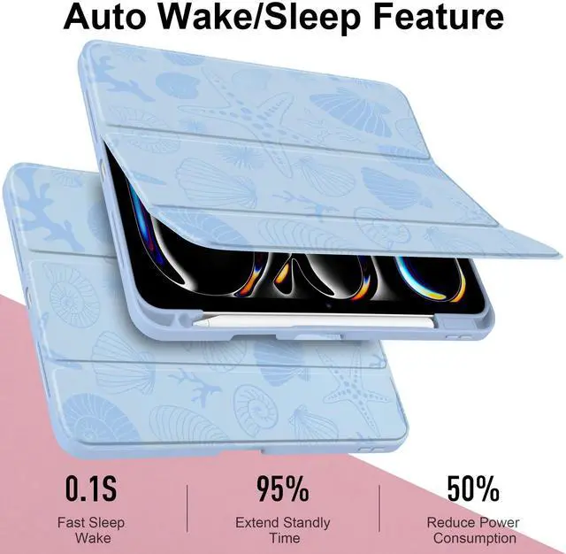 Shock-Absorbing TPU Edges: The ultra-thin ( 0.3 mm) high-transparency polycarbonate back panel showcases the original look of your iPad while maintaining durability. Reinforced with flexible TPU bumpers around all edges, this case provides excellent impact resistance and corner protection, minimizing damage from accidental drops or knocks. ^^ Multi-Angle Tri-Fold Stand & Hidden Apple Pencil Slot: Designed for versatility, the foldable front cover easily transforms into a stable stand, offering two optimized angles65 for media viewing and 30 for typing or drawing. A hidden Apple Pencil holder along the side keeps your stylus secure and within reach, without interfering with charging or Touch ID functionality. ^^ Elegant Design with