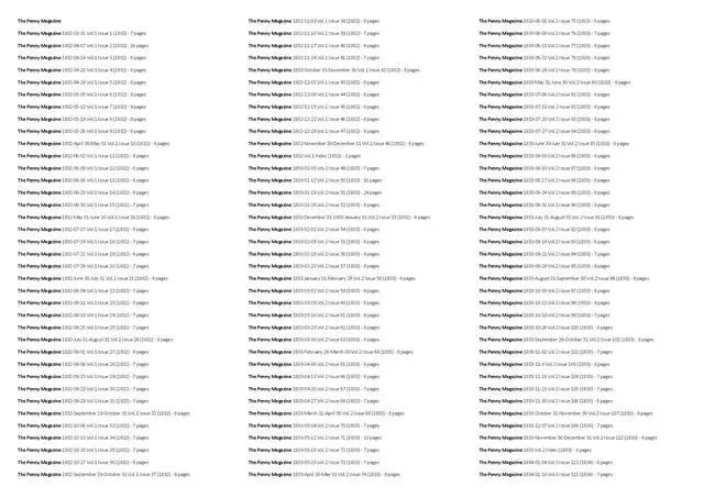 They are fully searchable. All our USBs are professionally produced, designed and packaged. ----------------------------------The Penny Magazine 1832-03-31 Vol. 1 Issue 1 (1832) - 7 pagesThe Penny Magazine 1832-04-07 Vol. 1 Issue 2 (1832) - 16 pagesThe Penny Magazine 1832-04-14 Vol. 1 Issue 3 (1832) - 8 pagesThe Penny Magazine 1832-04-21 Vol. 1 Issue 4 (1832) - 8 pagesThe Penny Magazine 1832-04-28 Vol. 1 Issue 5 (1832) - 8 pagesThe Penny Magazine 1832-05-05 Vol. 1 Issue 6 (1832) - 9 pages+ Plus 875 more books!