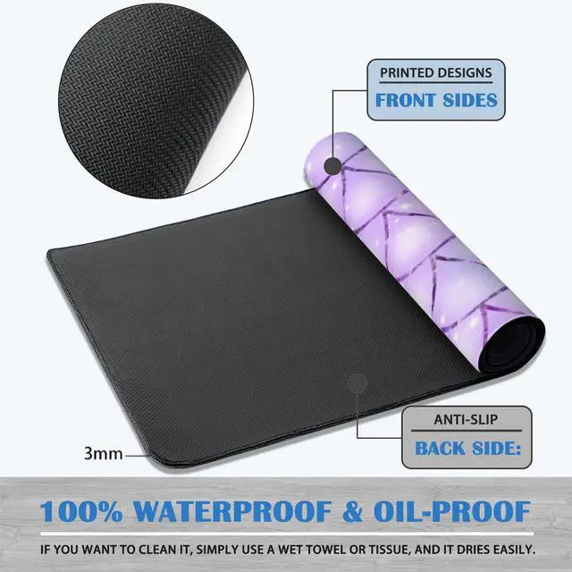 Environmental, and safe to use. ^^ Soft and Non-slip Rubber BaseThe soft and dense non-skid nature rubber base keeps the pad firmly in place, it can effectively prevent the mouse and keyboard from sliding and moving for stable operation. The desk pad is flexible enough to be rolled up for easy transport, to move around so you can work or game wherever you want. ^^ Suitable for many occasionsLarge enough size can protect the desktop from abrasion and liquid spills. Works well on all types of desks including wood, glass, leather, metal, marble desk and more.