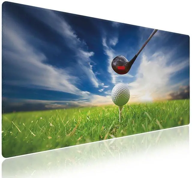 knseva. Extended XXL Mouse Pad (31.5" x 15.8") - Golf Club Themed Macro Photography Print of Lofter and Ball on Tee Sports, Extra Large Office Accessories, Premium Stitched Anti-Slip Gaming Desk Mat